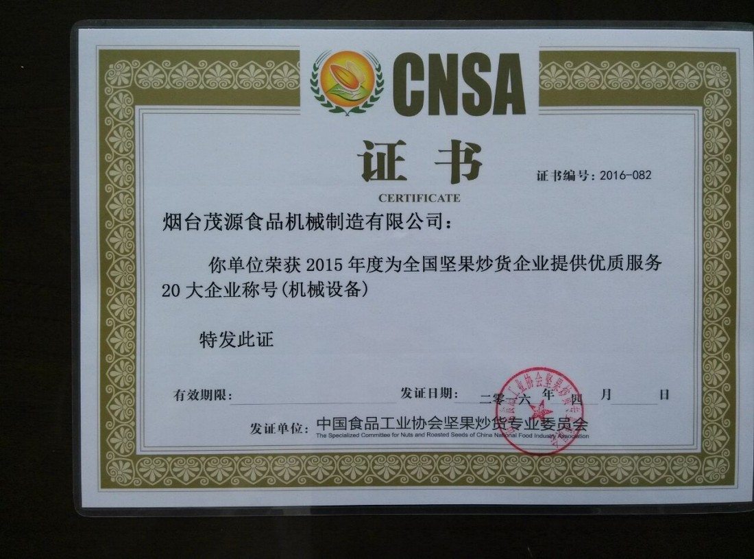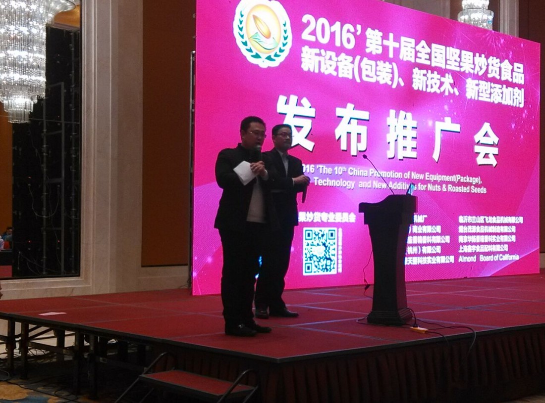 展會期間,主辦單位還舉辦了全國堅果炒貨行業(yè)國內(nèi)外新設(shè)備(包裝)、新技術(shù)、新型添加劑、配料等新產(chǎn)品推廣發(fā)布會,發(fā)布了2015-2016年全國堅果炒貨行業(yè)新設(shè)備和新型添加劑的使用分析和預(yù)測報告,還有9家中外企業(yè)的11項(xiàng)新設(shè)備(包裝)、新技術(shù)、新型添加劑進(jìn)行了推介發(fā)布。煙臺茂源食品機(jī)械制造有限公司作為9家中外企業(yè)之一在這次大會上了做了新設(shè)備的推介發(fā)布,并和現(xiàn)場業(yè)內(nèi)同行進(jìn)行提問互動。會后,舉辦了2015年度全國堅果行業(yè)優(yōu)秀企業(yè)的頒獎典禮,煙臺茂源等20個企業(yè)被評為2015年度為全國堅果炒貨企業(yè)提供優(yōu)良服務(wù)企業(yè)稱號。