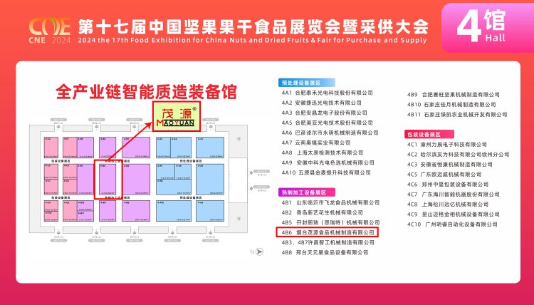 此次展會初次設(shè)立“全產(chǎn)業(yè)鏈智能質(zhì)造裝備館”,并將該館設(shè)在4號展館。全產(chǎn)業(yè)鏈智能質(zhì)造裝備館是本屆展會中代表堅果果干行業(yè)裝備風(fēng)向標(biāo)的旗艦館,該館匯集了預(yù)處理設(shè)備、熟制加工設(shè)備、包裝設(shè)備三大展區(qū),覆蓋行業(yè)全產(chǎn)業(yè)鏈,全方位展示先進(jìn)技術(shù)、高端設(shè)備、智能系統(tǒng)、過硬質(zhì)量及應(yīng)用效果,為食品企業(yè)提供一站式裝備應(yīng)用解決方案。