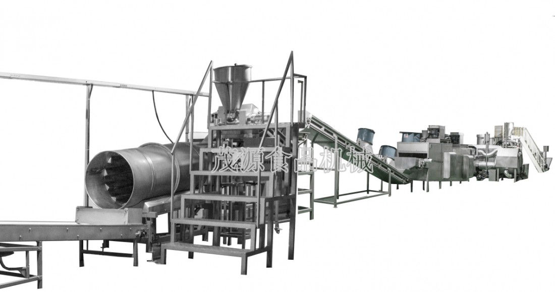 工藝流程:一次拌料-油炸-二次拌料-冷卻瀝油