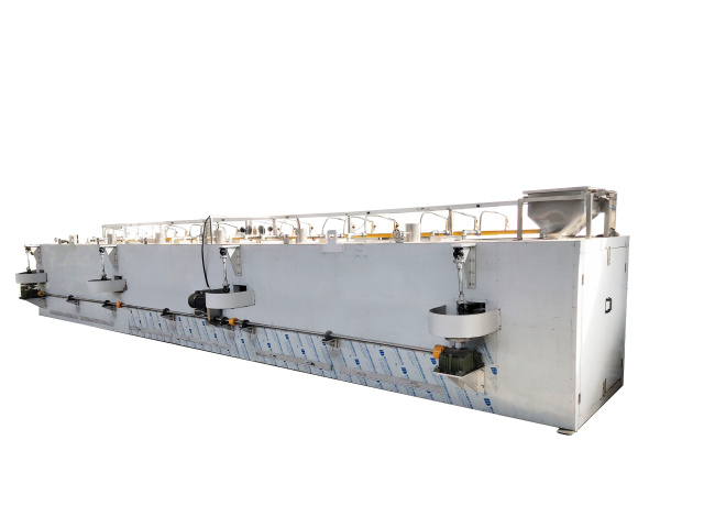 全自動平面回轉烤爐主要用于堅果炒貨及籽類產品裹衣裹粉后的烘烤加工。采用直燃式加熱方式,熱量直接作用于食品上,烘烤香味更濃郁,并通過設備的搖擺避免食品粘連變形。具有烘烤口味色澤優良, 沒有污染等特點。